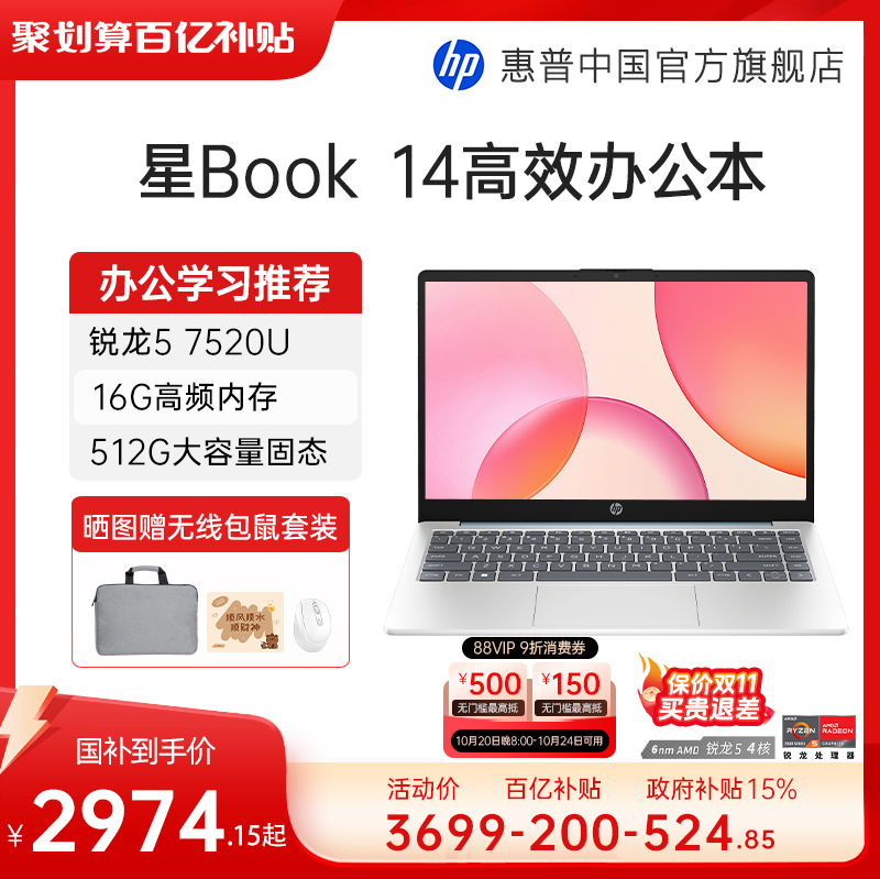 惠普星Book14/15国补+直播间补贴
