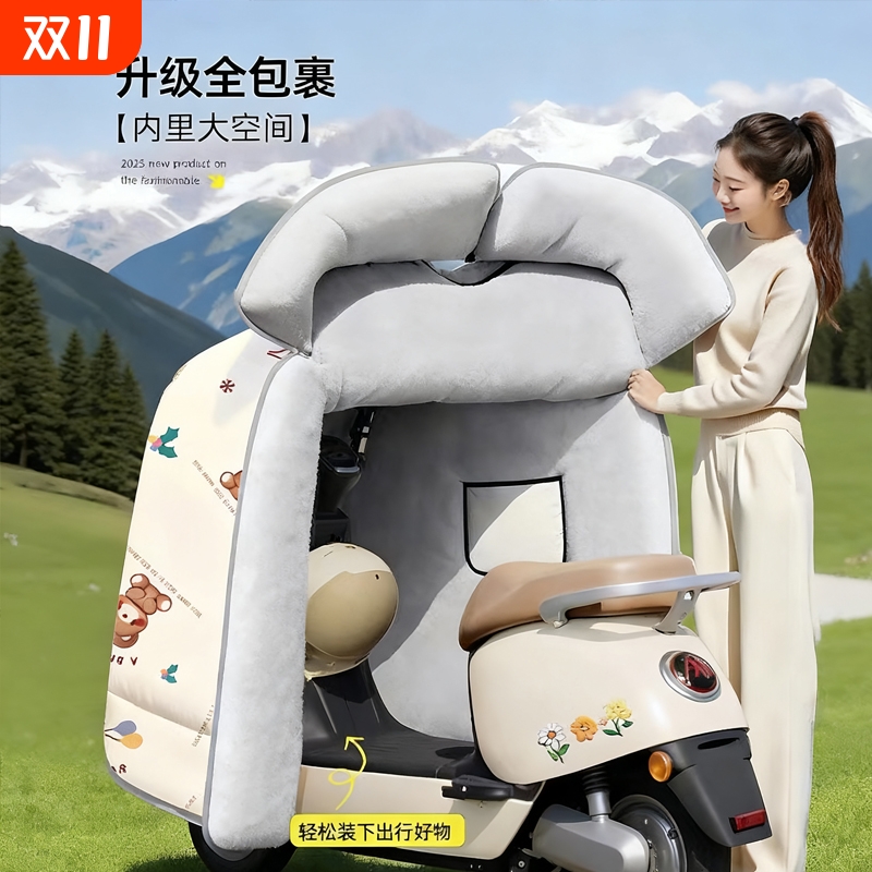 电动车挡风被冬季加绒加厚2025新款全包电瓶车摩托防水罩四季通用