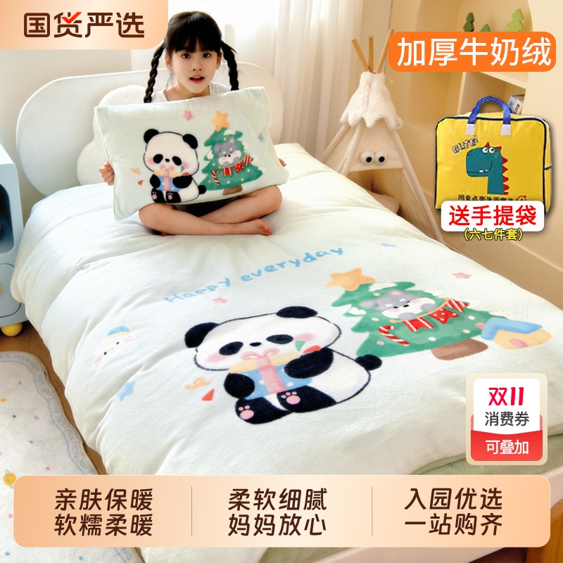 加厚牛奶绒幼儿园被子三件套冬季保暖宝宝儿童午睡专用六件套熊猫