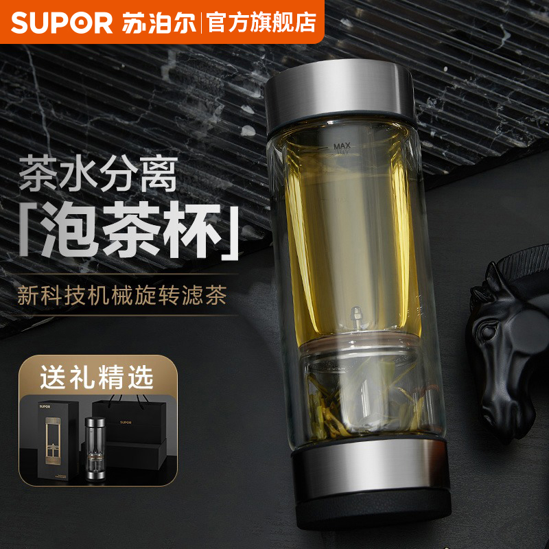 苏泊尔双层耐热玻璃杯带把手柄杯办公商务水杯子男士款泡茶杯家用