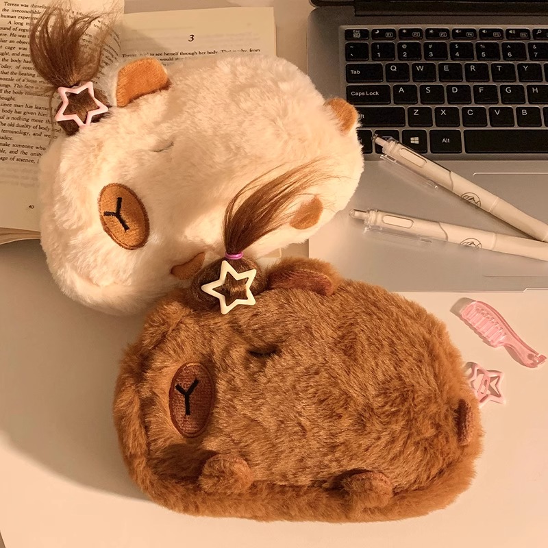 卡皮巴拉搞怪新款毛绒笔袋文具盒