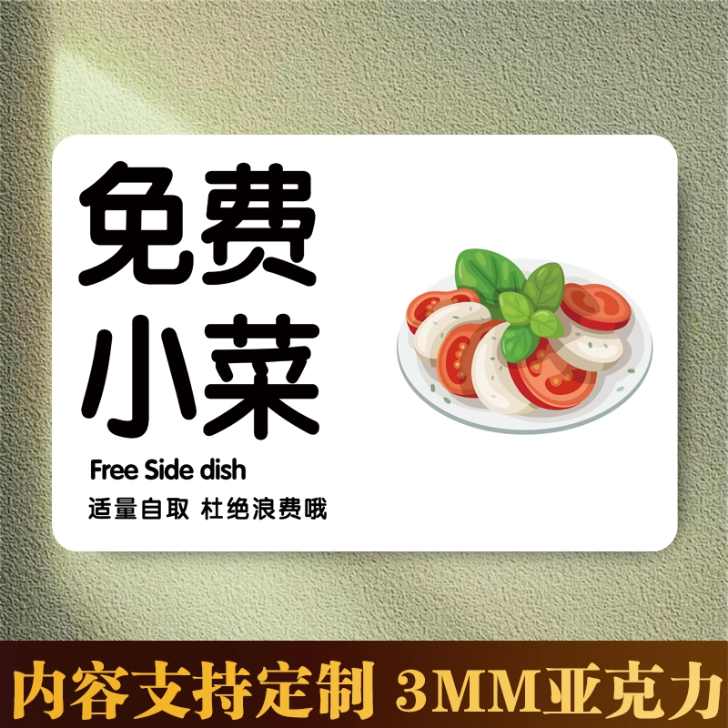 小料自助免费加面米饭PVC不干胶标签贴纸提示牌饭店小菜自取续饭J