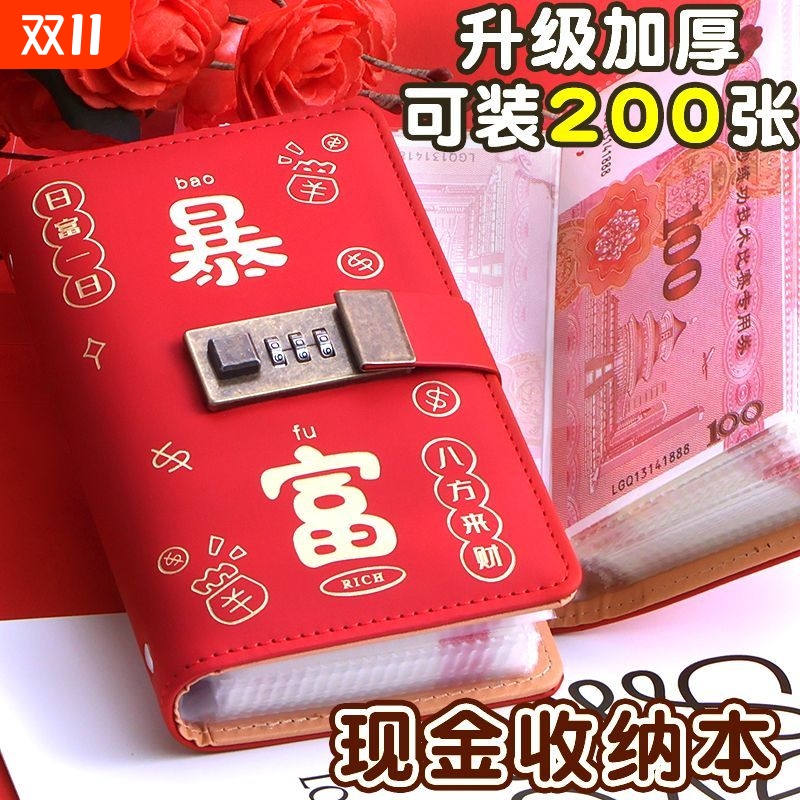 2025新款暴富密码锁现金收纳存钱本多功能大容量防水年轻人存钱的
