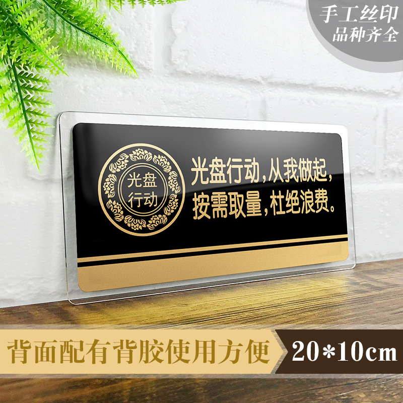 光盘行动从我做起按需取量杜绝浪费亚克力标识牌酒店餐厅提示标志