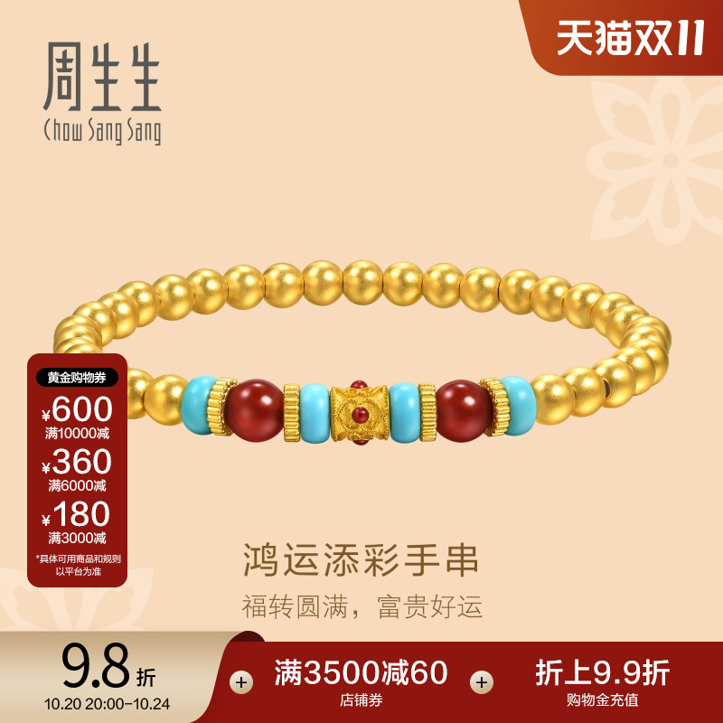 周生生古法黄金文化祝福东方古祖玉髓绿松石手链95657B