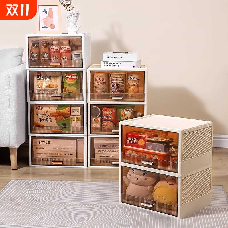 化妆品收纳盒文具收纳箱厨房食物有盖可叠加内衣整理盒储物箱橱柜