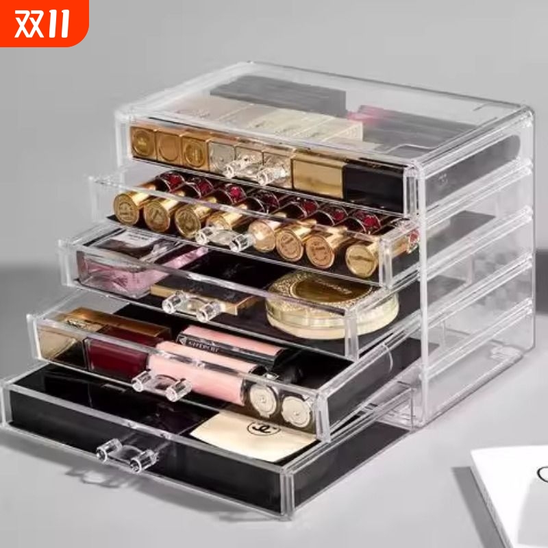 口红唇膏化妆品彩妆透明抽屉宿舍粉饼气垫叠加杂物手办收纳盒大号