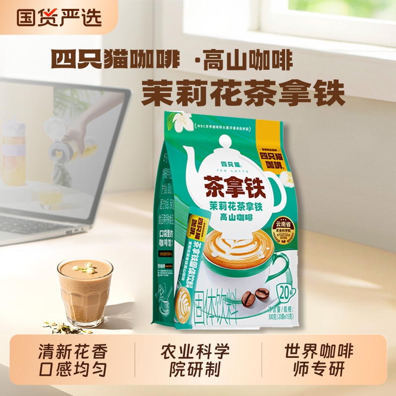 四只猫农科院茉莉花普洱茶拿铁下午茶云南高山花香三合一速溶咖啡