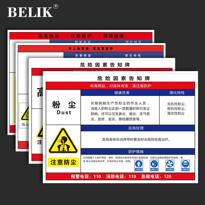 BELIK职业病危害告知卡40*60CM1mm铝板安全生产危险因