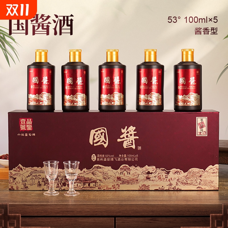 国酱品鉴一号酱香型53度纯粮酒整箱100ml*5瓶送人送礼收藏摆