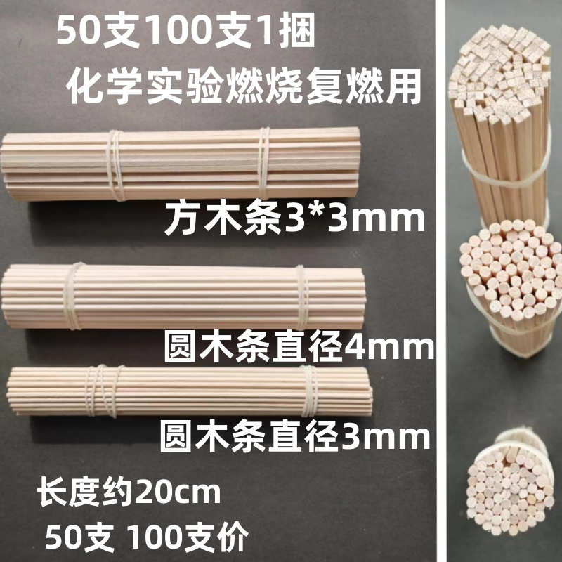 细木条化学实验小木条在氧气中燃烧学生实验用20cm3mm4mm教