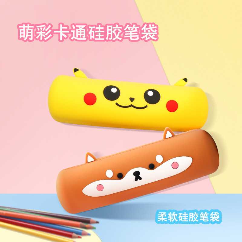 新款直销跨境新款创意卡通儿童硅胶笔袋可爱硅胶文具盒学习文具收
