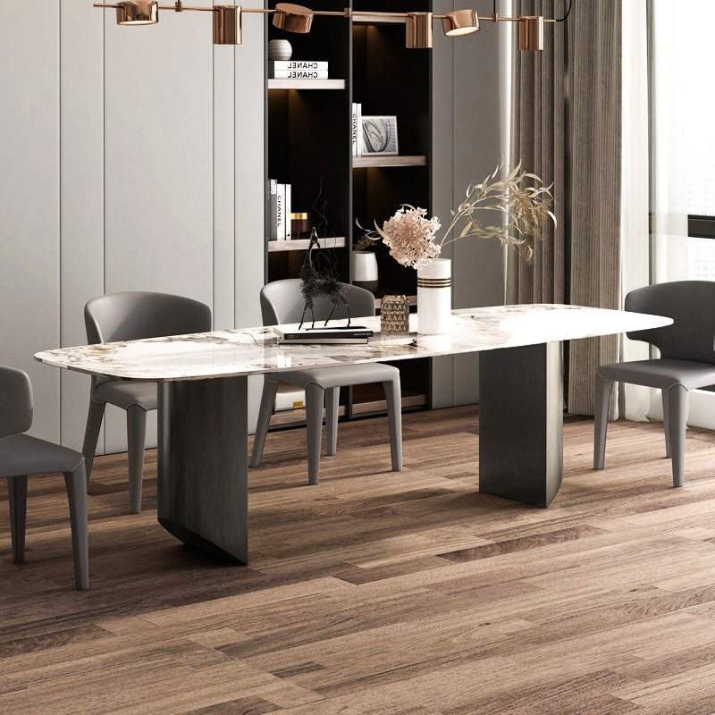 亮光岩板餐桌椅组合家用大小户型吃饭桌子长方形现代简约轻奢餐桌