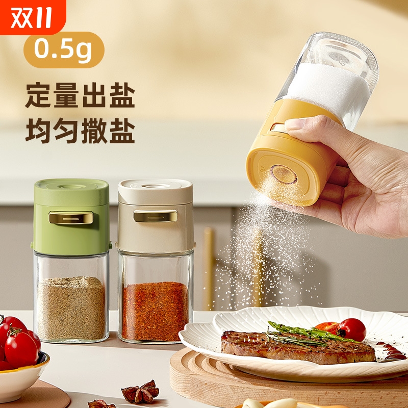 家用定量盐瓶双口计量控盐撒料调料罐厨房按压式玻璃调料瓶盐罐