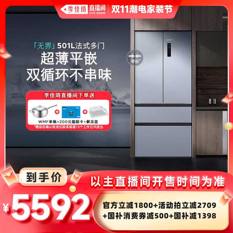 【李佳琦直播间潮电家装节】西门子无界平嵌501L双循环冰箱E12