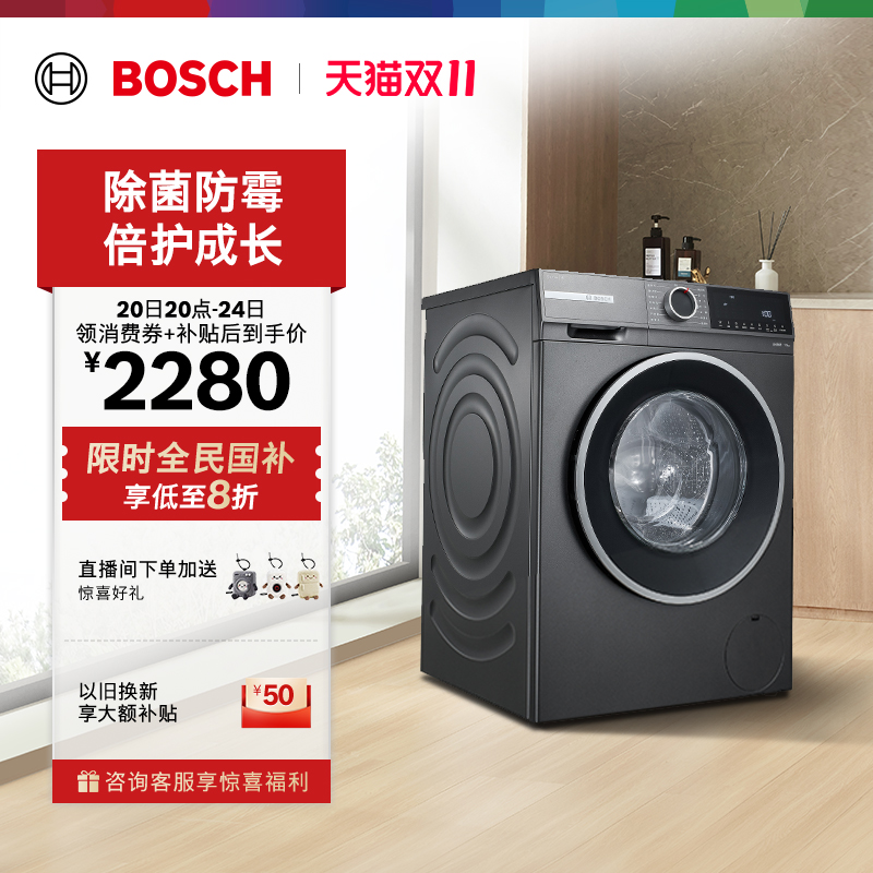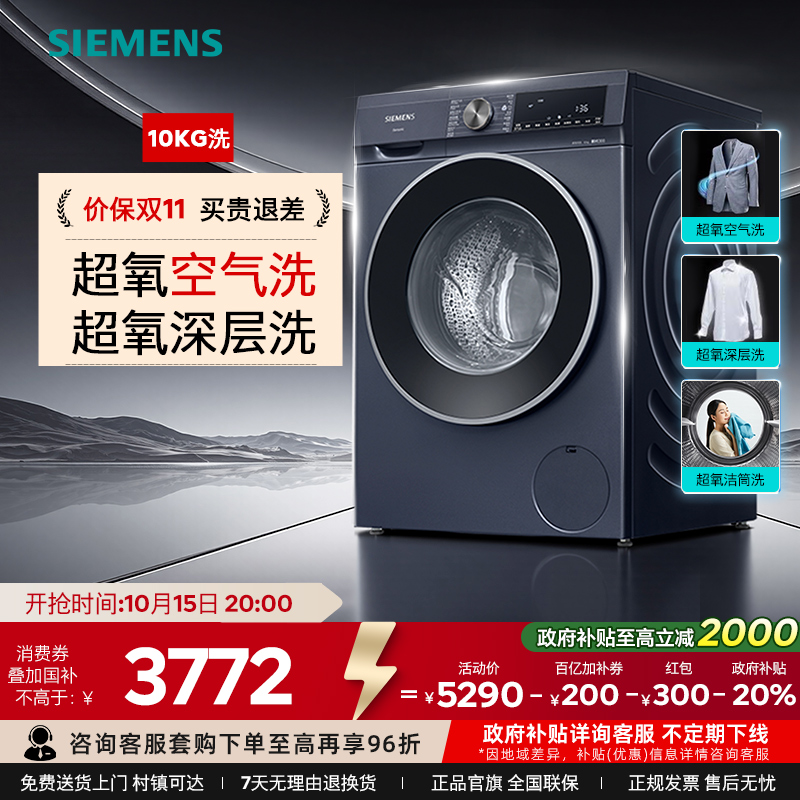 西门子超氧洗衣机10公斤滚筒大容量全自动变频智能除渍WG54A2