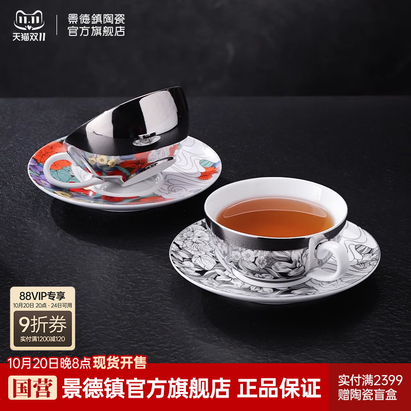 景德镇官方陶瓷中国色茶具咖啡杯碟套装精致马克杯情侣对杯结婚礼