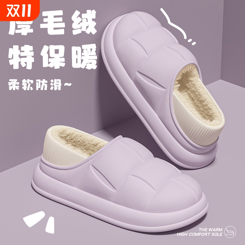 包跟棉拖鞋女秋冬季外穿保暖雪地靴防滑厚底居家情侣毛毛绒家用男
