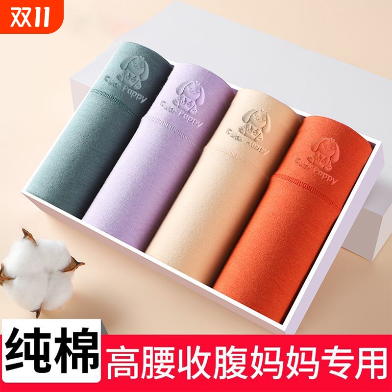 内裤女纯棉抗菌档透气印花女士全棉高腰收腹性感短裤头中年三角裤