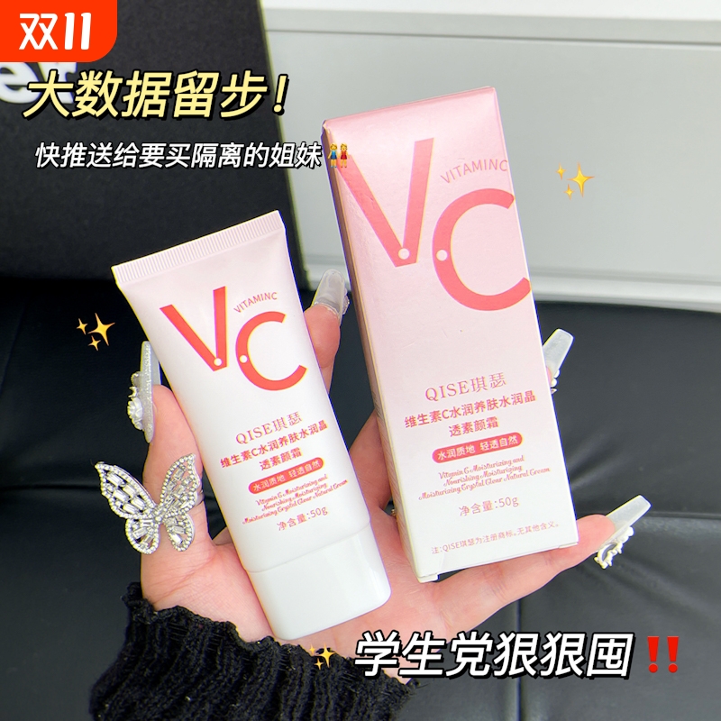 海棠推荐懒人维生素C遮瑕素颜霜自然轻薄提亮肤色保湿女隔离养肤