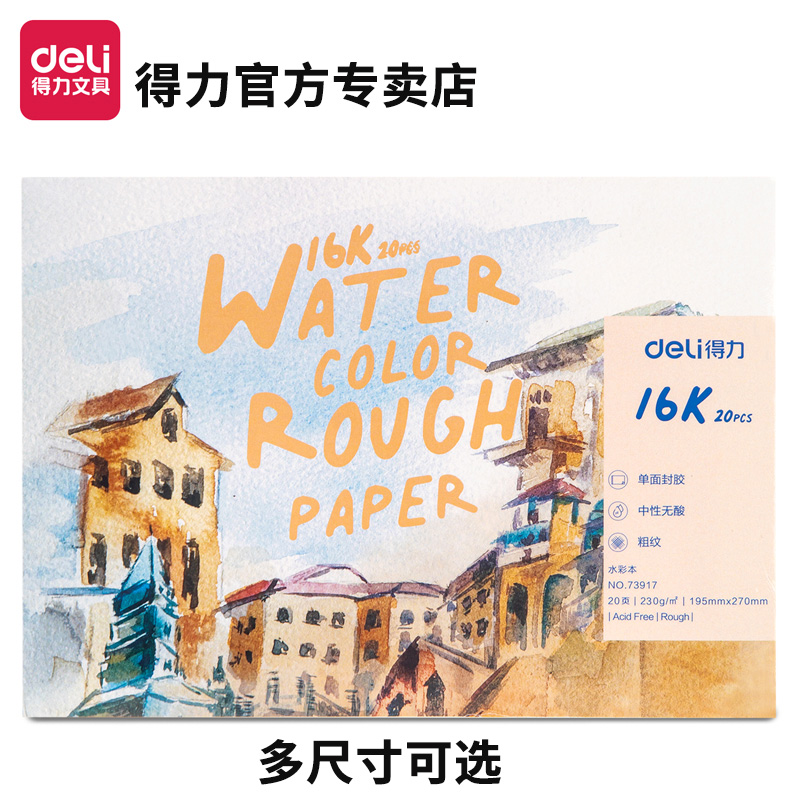 得力水彩本4K水彩纸美术水彩画本水彩通用本加厚绘画学生用8k16