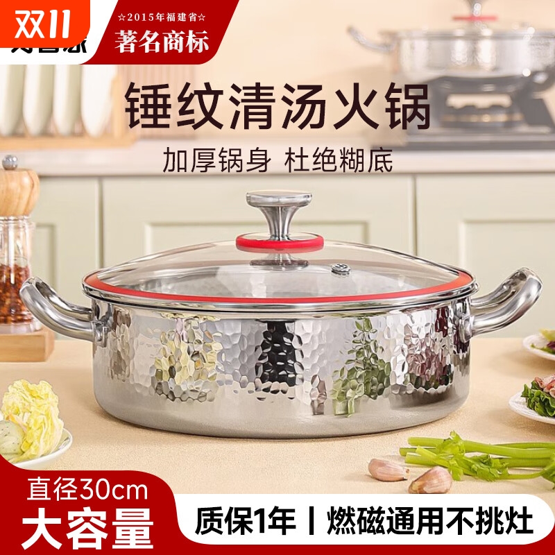 鸳鸯锅火锅盆加厚电磁炉专用涮涮锅大容量厨房不锈钢火锅清汤锅