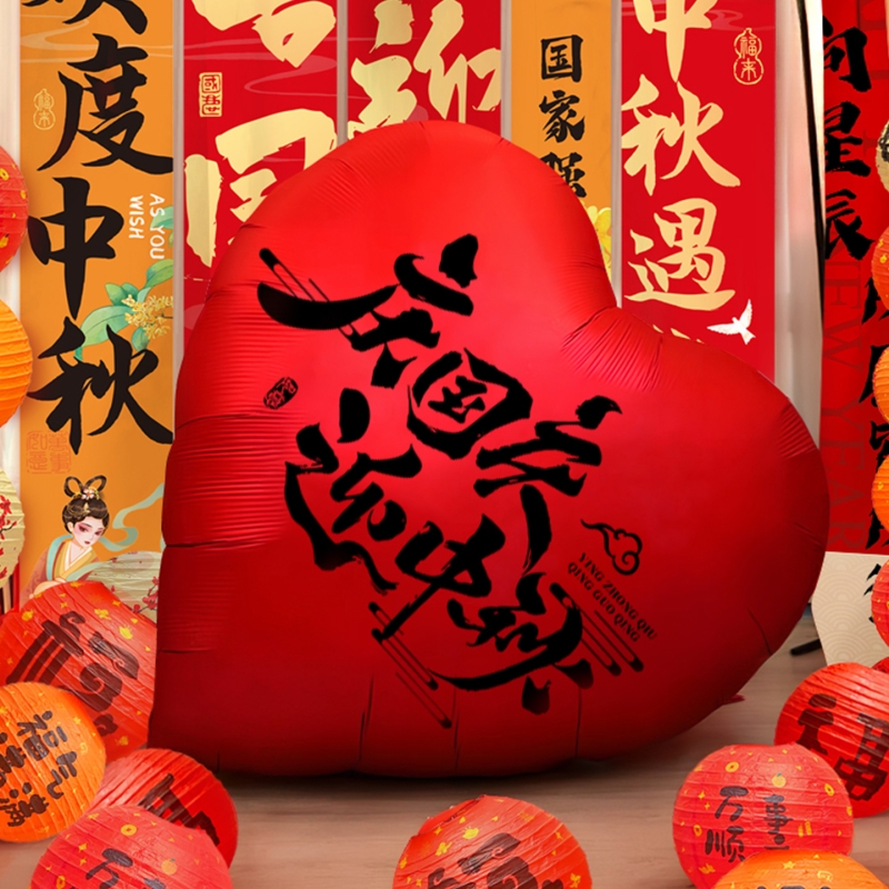 中秋国庆大红爱心气球装饰门店