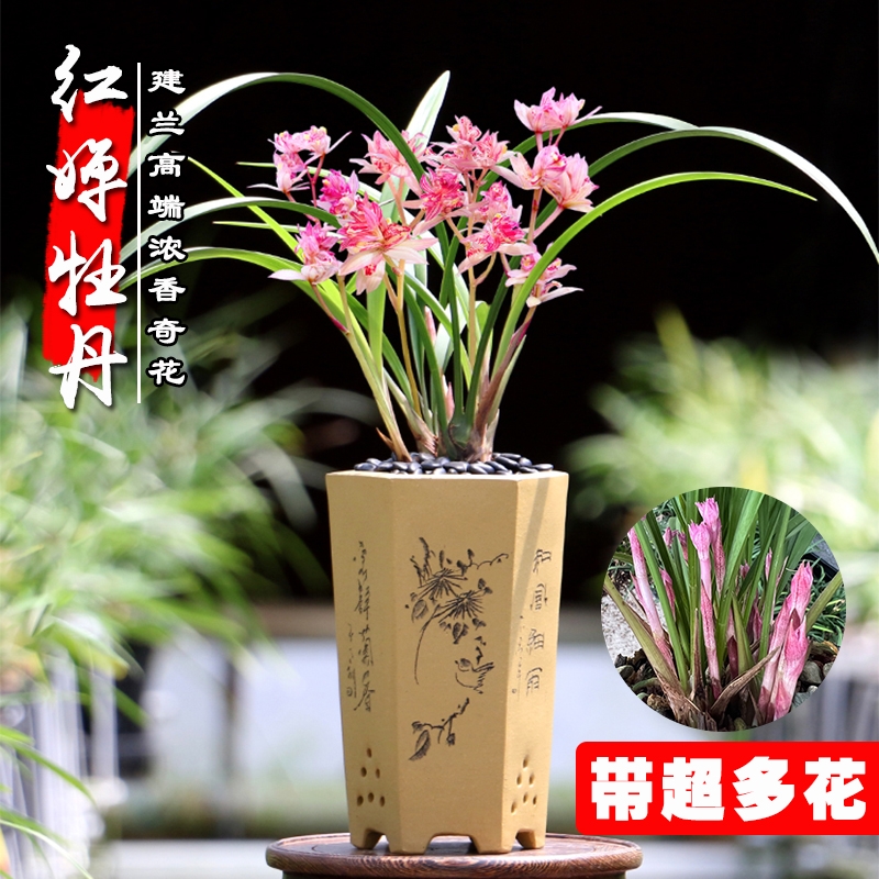 建兰红婵牡丹带超多花苞浓香名贵四季兰花苗室内好养绿植盆栽花卉