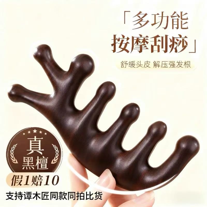 檀木按摩头皮脸部经络疏通神器防脱发便携随身宽齿小梳子必备好物