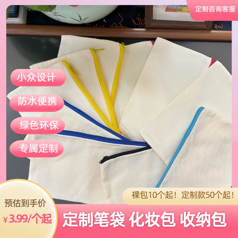 纯棉现货空白帆布拉链袋 帆布化妆品包拉链笔袋帆布袋定 制