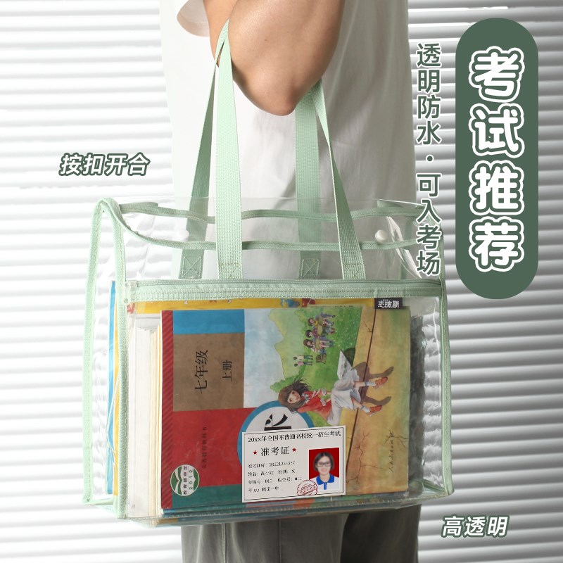 现货速发透明文件袋学生科目双层补习袋手提拎书袋作业试卷美术收