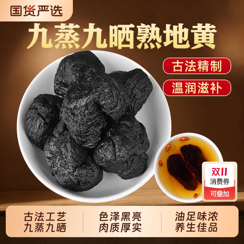 九蒸九晒制熟地黄中药材正品生地野生老怀熟地片泡水喝官方旗舰店