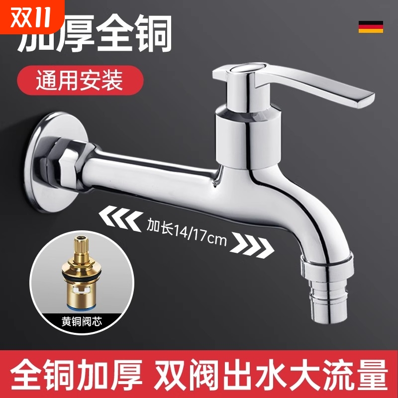 全铜加长水龙头洗衣机专用四分水嘴阳台厕所单冷入墙龙头家用正品