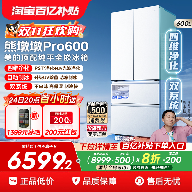 美的华凌神机小宙斯518双系统超薄零嵌自动制冰法式四门家用冰箱
