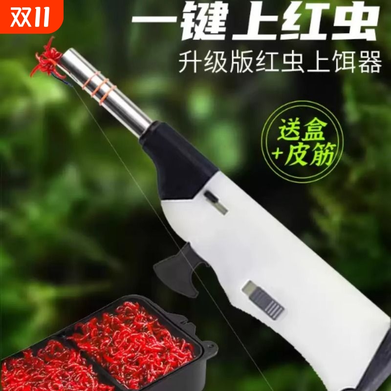 强磁自动不锈钢红虫枪上饵器皮筋蚯蚓活饵快速上钩多功能挂饵渔具