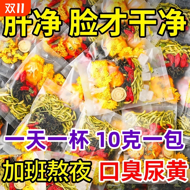 菊花枸杞决明子养茶包肝熬夜益护金银花茶去正品火肝男士养生茶