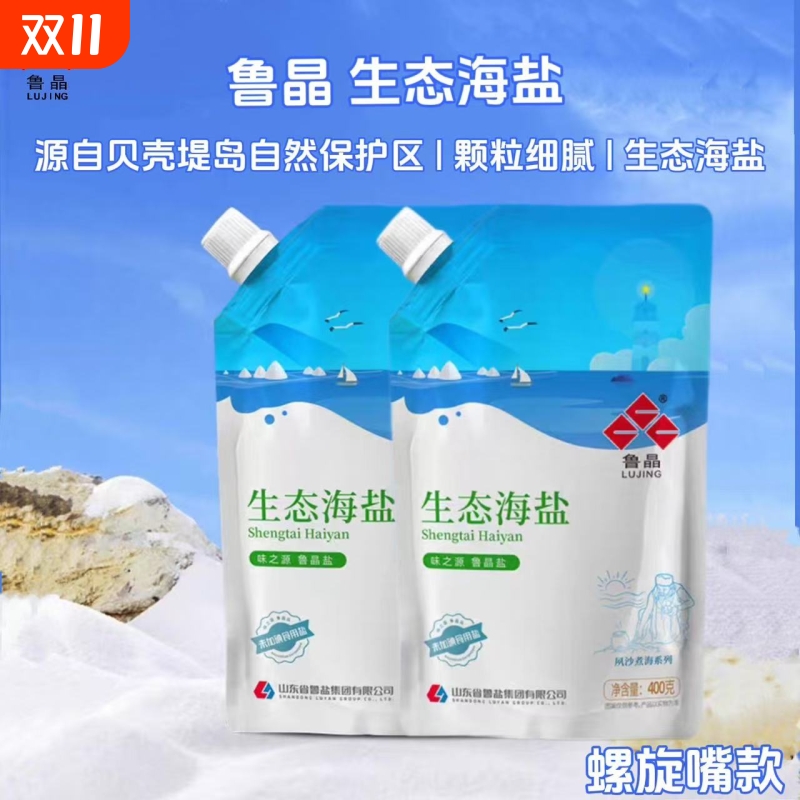 鲁晶生态海盐无碘盐400g*2螺旋嘴食用山东无抗结剂零添加家用精