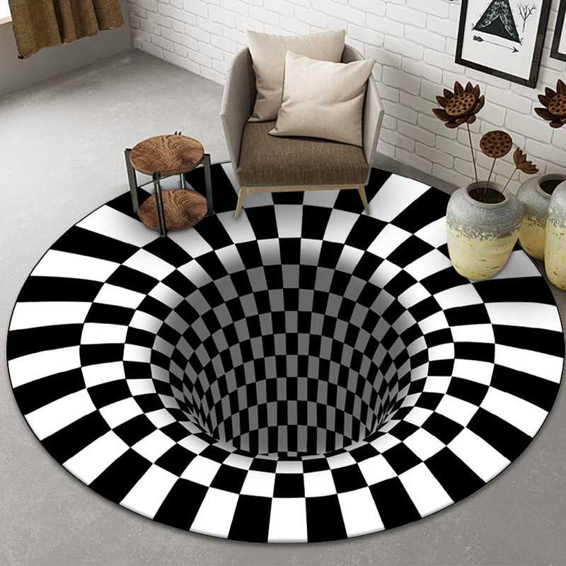 3D立体抖快爆款眩晕地毯视觉漩涡黑白格错觉陷阱网红创意圆形地垫