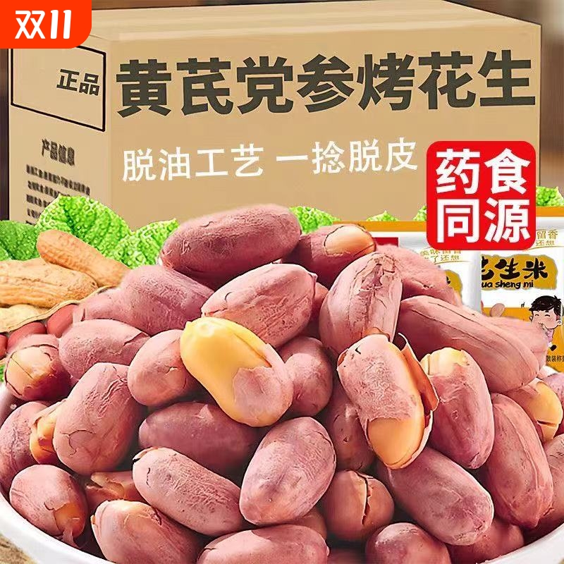 正宗五香黄芪党参烤花生米下酒菜红皮脱油花生即食炒货类休闲零食