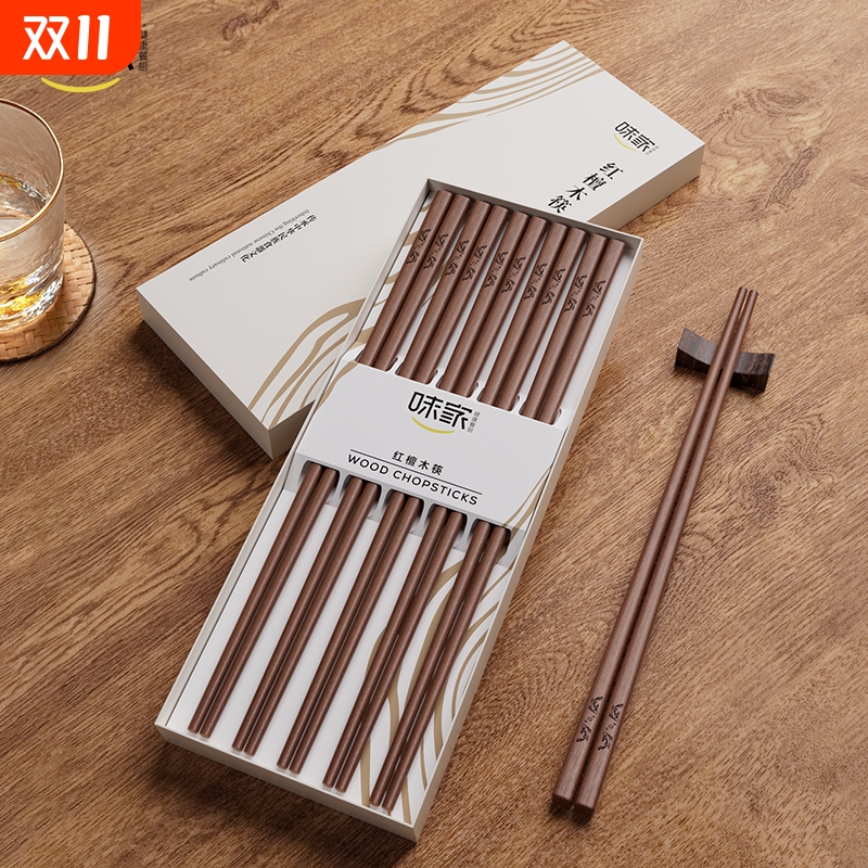 味家红檀木筷子家用高档抗菌防霉天然实木耐高温木质家庭餐具筷子