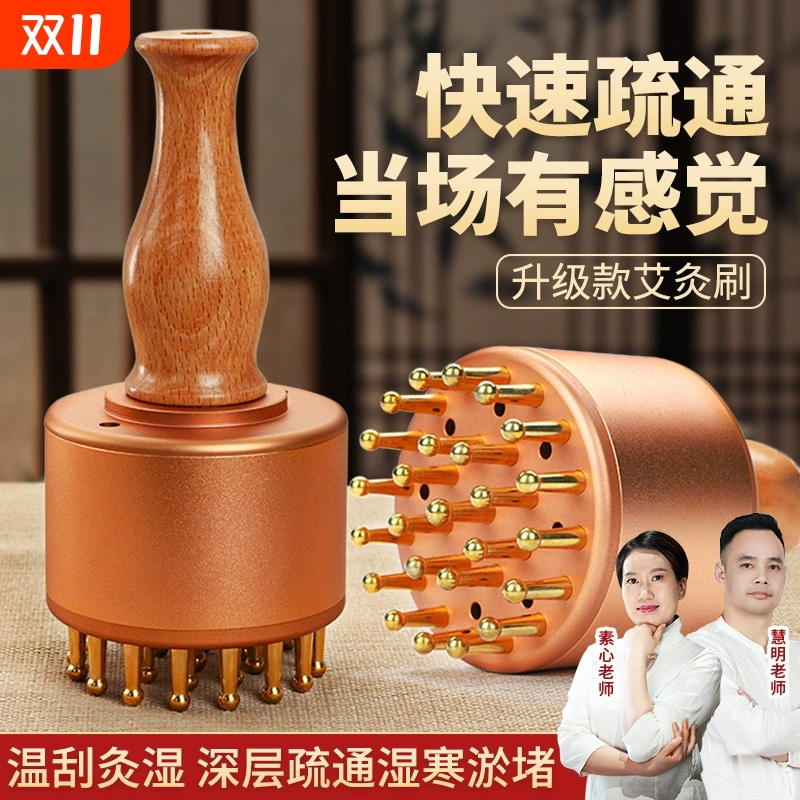 纯黄铜艾灸刷艾灸刮痧一体罐
