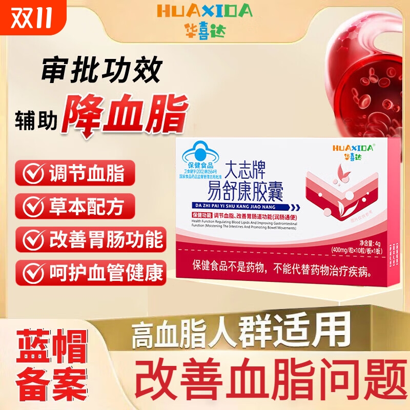 华喜达大志牌易舒康胶囊调节血脂改善胃肠道适用通便降脂降血脂