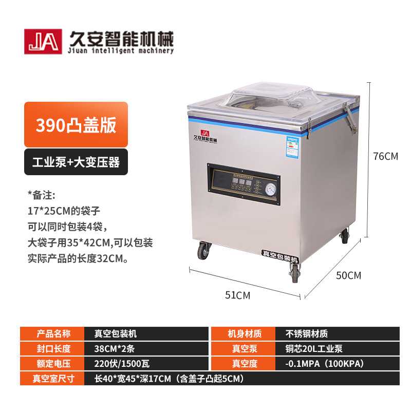 390 凸盖版商用真空包装机全自动大米熟食粽子海鲜封口机干湿两用