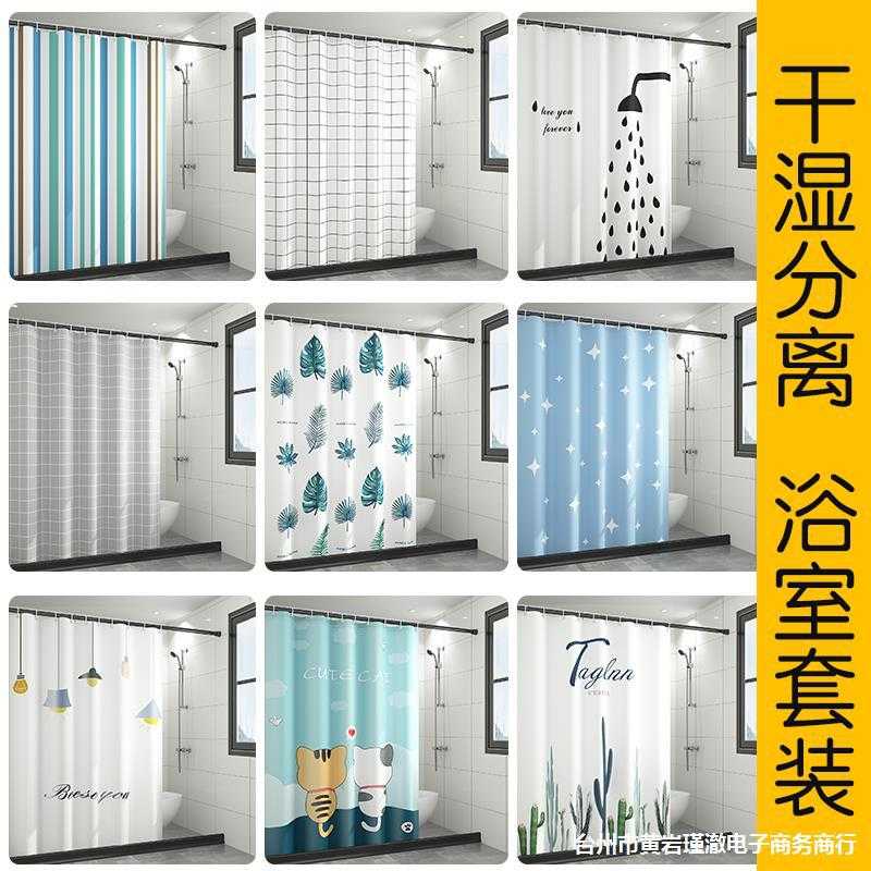 浴帘套装免打孔干湿分离卫生间磁吸防水布浴室挡水条加厚隔断挂帘