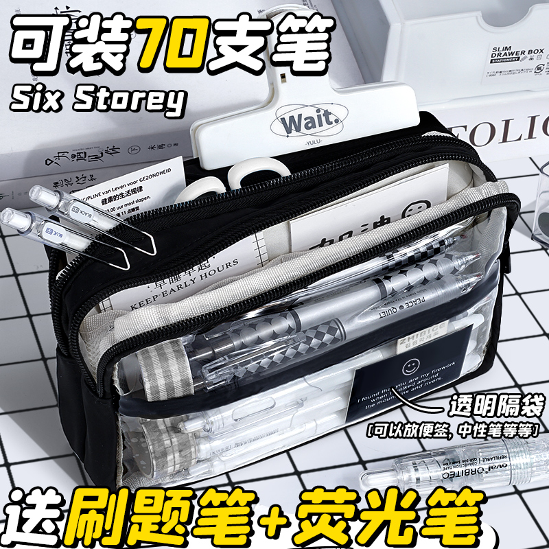 能透明笔袋大容量文具袋初中生高中学生用铅笔盒男孩2小024年新款