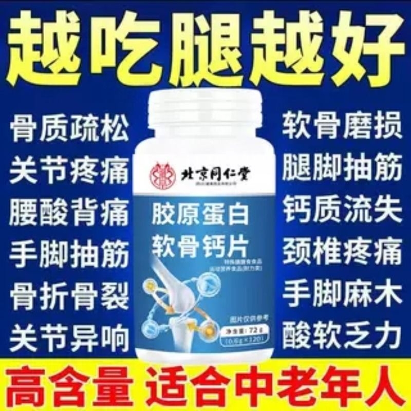 北京胶原蛋白软骨钙片高含量质疏松手脚麻木腰酸背痛膝120w