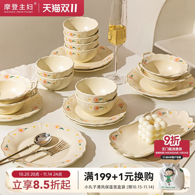 摩登主妇芍药奶油风碗碟餐具套装