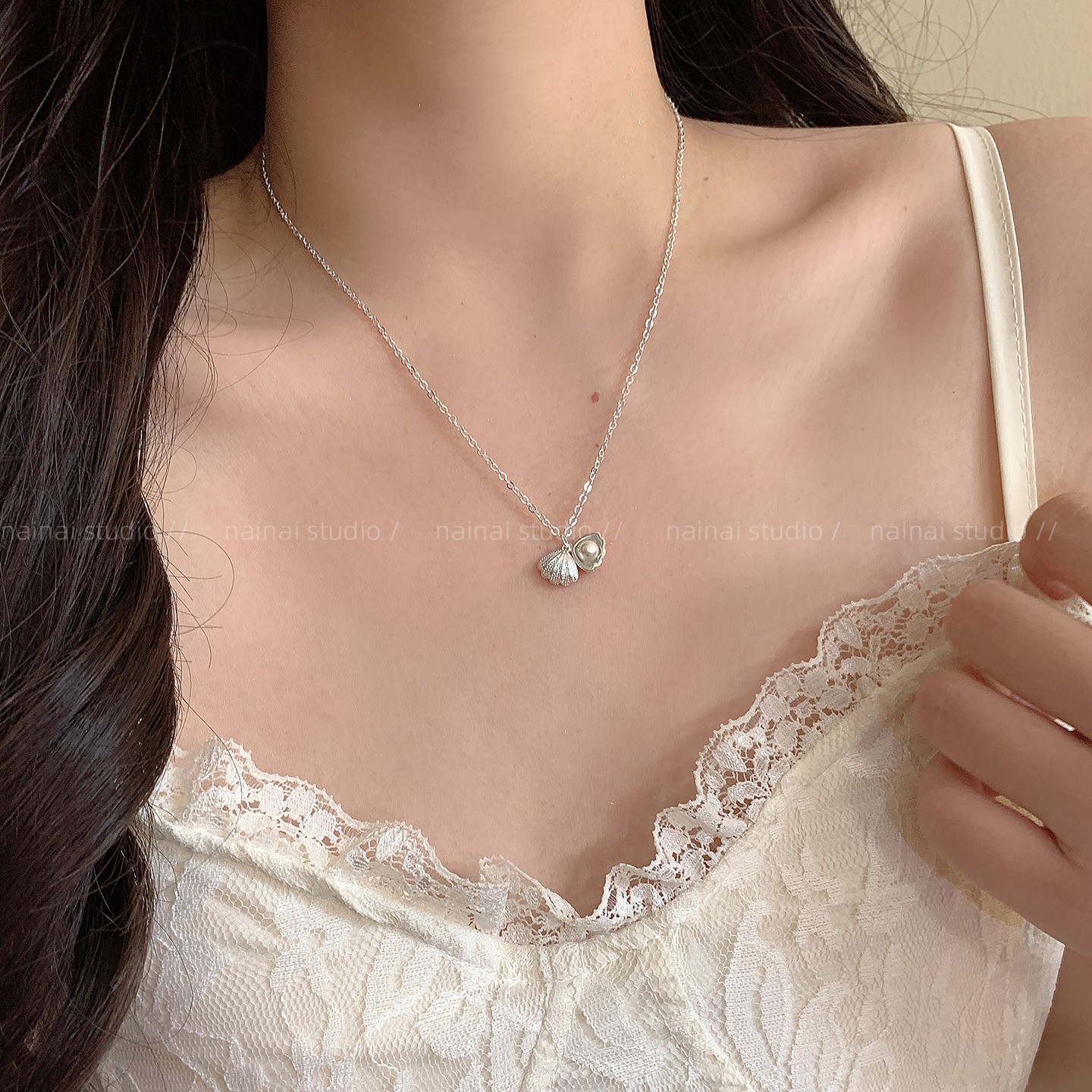 贝壳珍珠项链冷淡风银色ins风韩系锁骨链2025新款高级感度假风