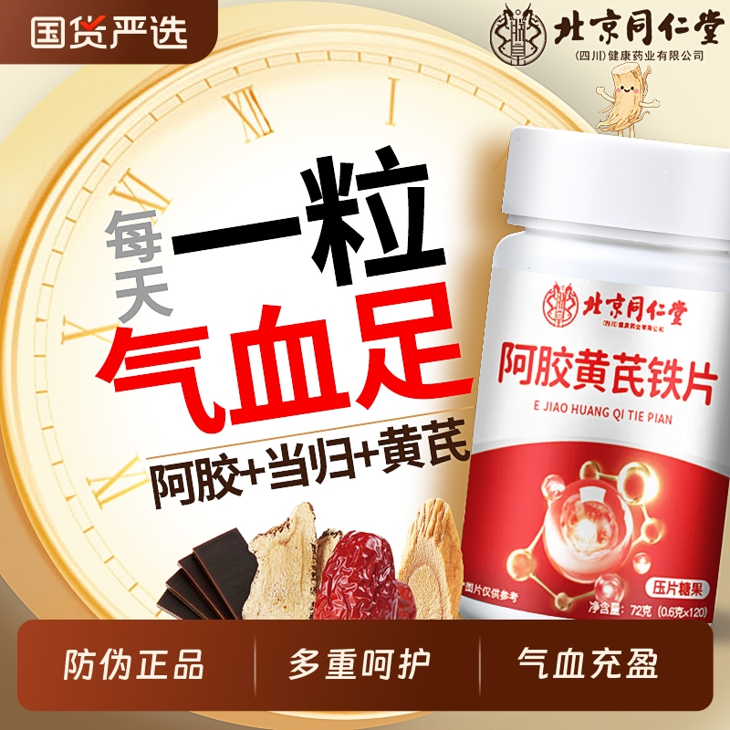 北京同仁堂当归黄芪铁片气血不足补气养血改善缺铁性贫血官方正品