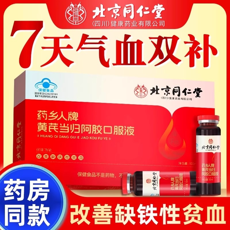 北京同仁堂黄芪当归阿胶口服液补气养血调理不上火女生贫血旗舰店